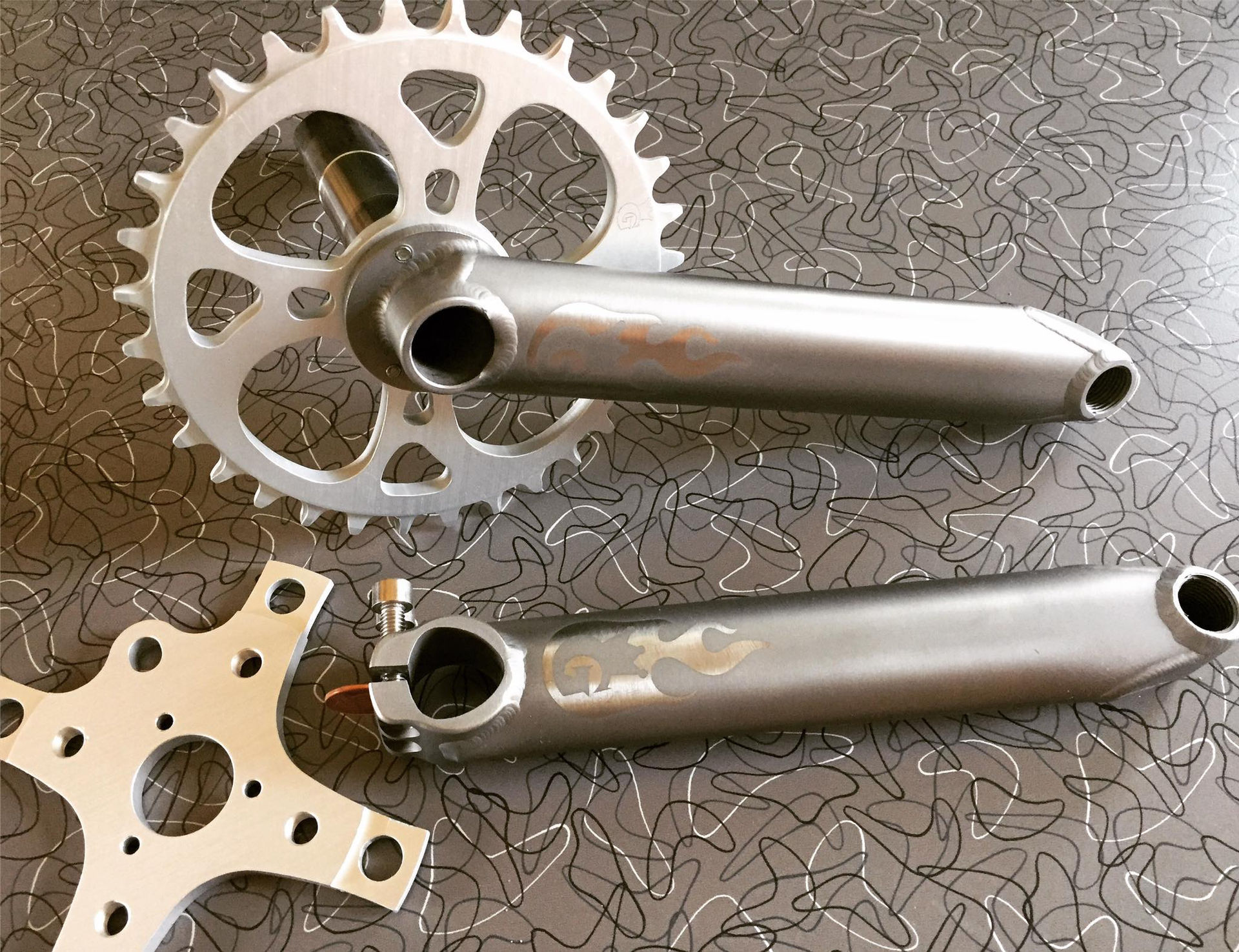 I love to make parts to complete a truly custom bike...rather than a component that hangs on the frame, custom parts help pull together the fit, performance, and final vision of the build. Our Hot Rod cranks in steel or titanium are available with a spider for multi ring play or a dedicated single ring for single speed and 1x drivetrains. Titanium forks in segmented, unicrown, and retro truss forks are a popular option to provide masterful front end control. Bar/stem combos create a solid connection to the bike while reducing weight. Finally, a little flex provided by one of our Disco Stick titanium seatposts will have you dancing down the trail. All are only available with a full bike order, get them while you have the opportunity!